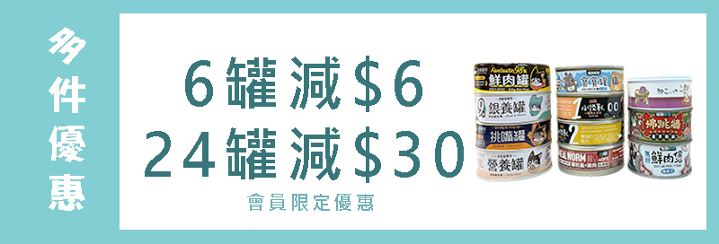 🥫 罐頭優惠 | 任選* 6件 即減 $6 | 任選* 24件 即減 $30 🥫 (按此了解更多)