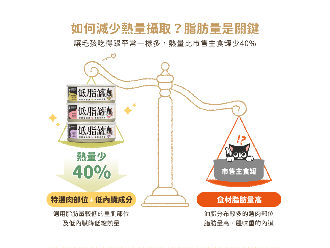 • 特選低脂食材,打造貓咪低卡餐