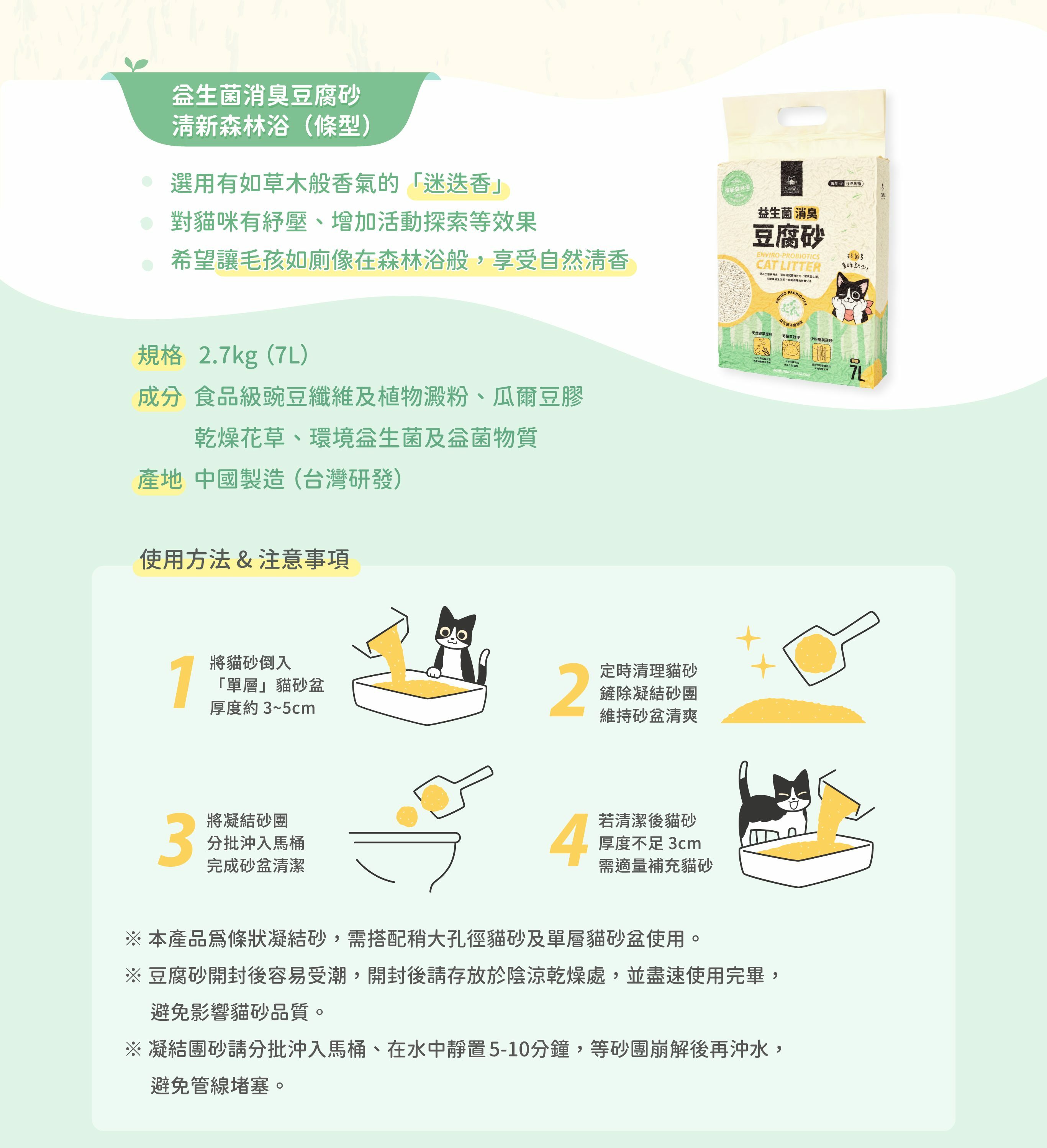 產品名稱: 益生菌消臭豆腐砂 (清新森林浴 - 條型)