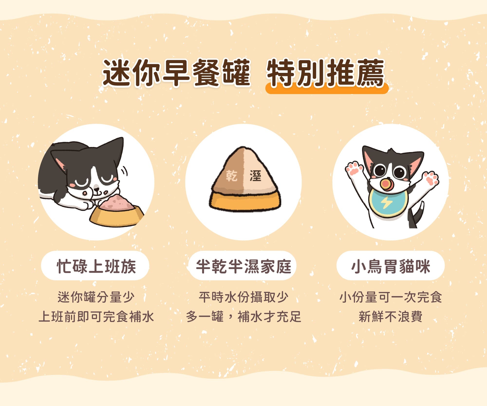 • 幕斯質地易於舔食,幼貓可輕鬆進食、消化吸收;幫助懷孕哺乳期母貓營養補充。