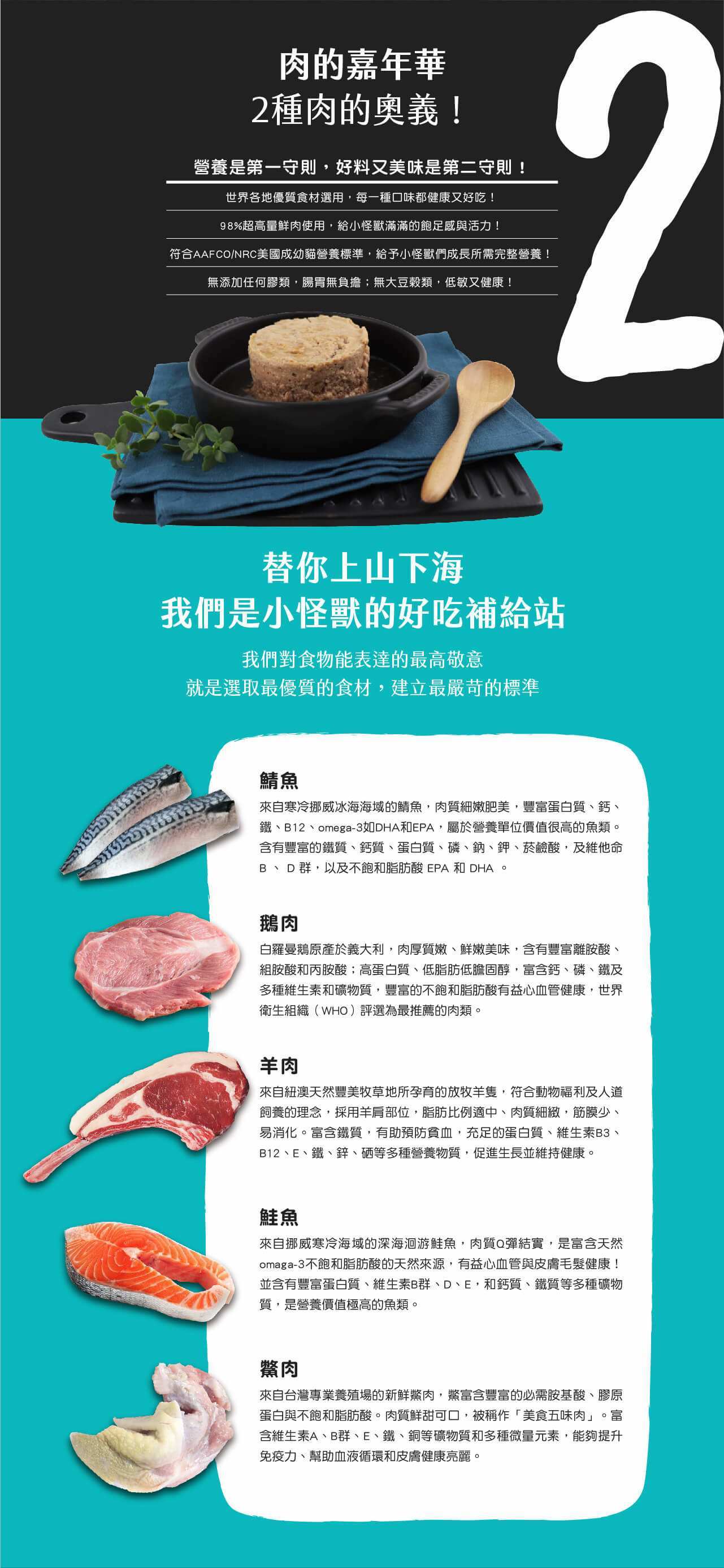 品牌名稱 :  貓族|小怪獸2種肉無膠主食罐