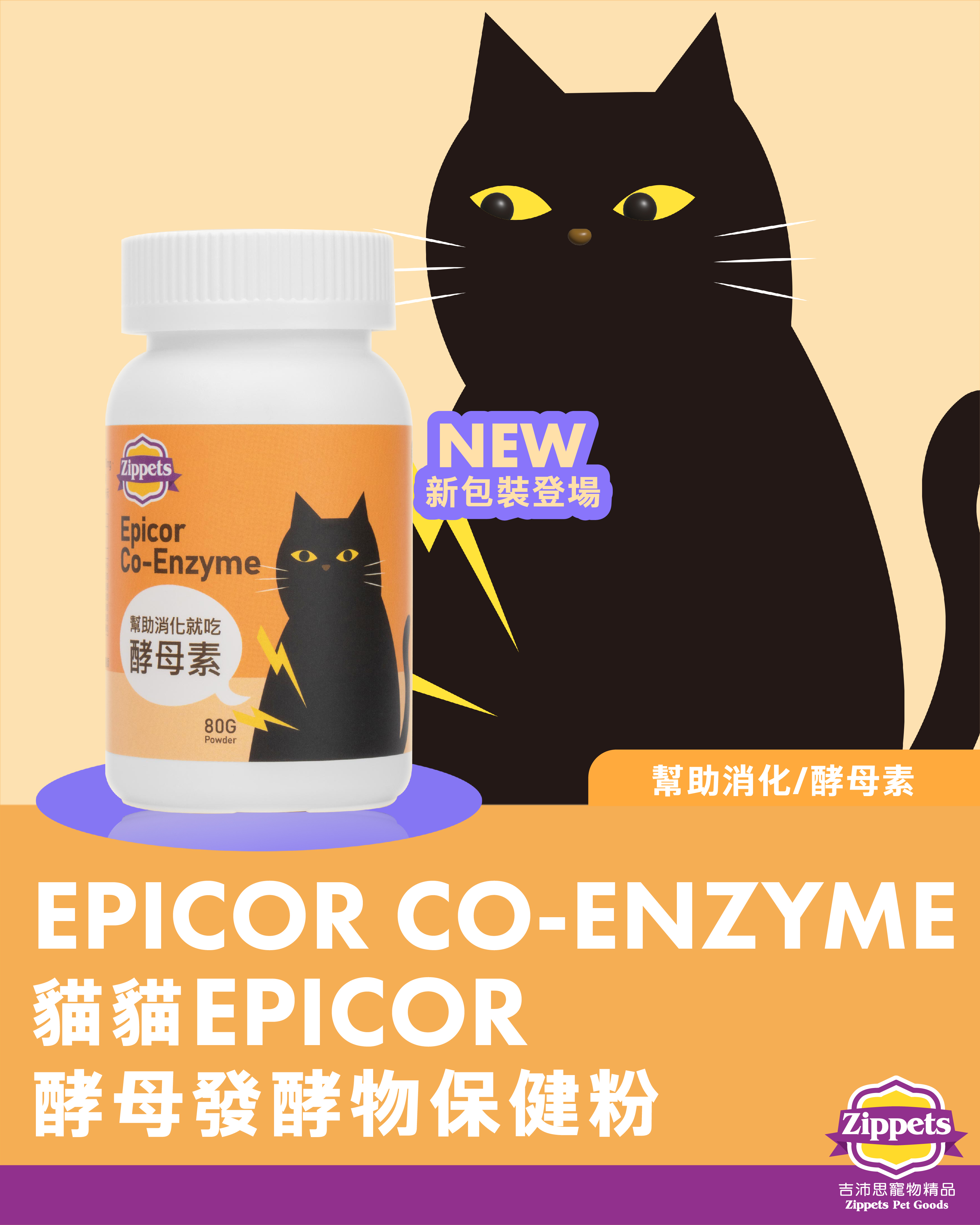 針對貓咪體內所需要的營養補充設計,專利授權Epicor酵母發酵物內含豐富維生素、礦物質、胺基酸,可增加自然抵抗力。添加鳳梨酵素、啤酒酵母、西伯利人參、牛磺酸更有於腸胃、視力和心血管保健,是各年齡貓咪最佳保健品