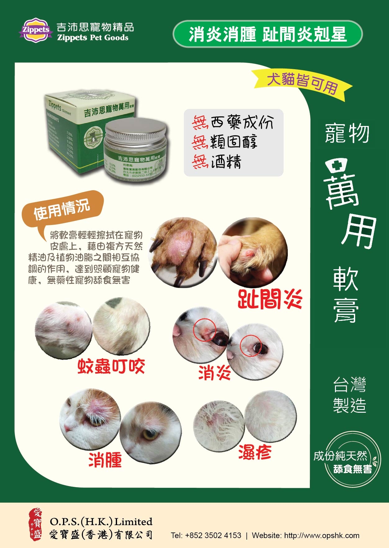 - 適用寵物常見的皮膚搔癢、紅腫、傷口等相關症狀