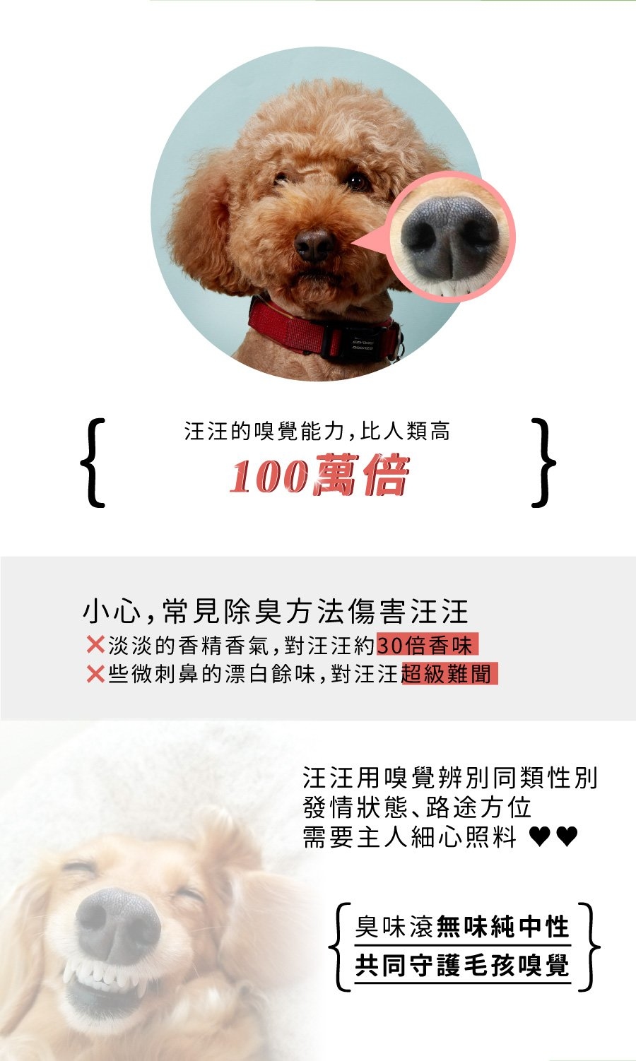 費力打掃臭味久久不散,刺鼻除臭劑又怕傷害毛孩。 飼主們可以使用臭味滾除臭/抑菌噴霧,輕輕一噴,快速消臭,省力省時。
