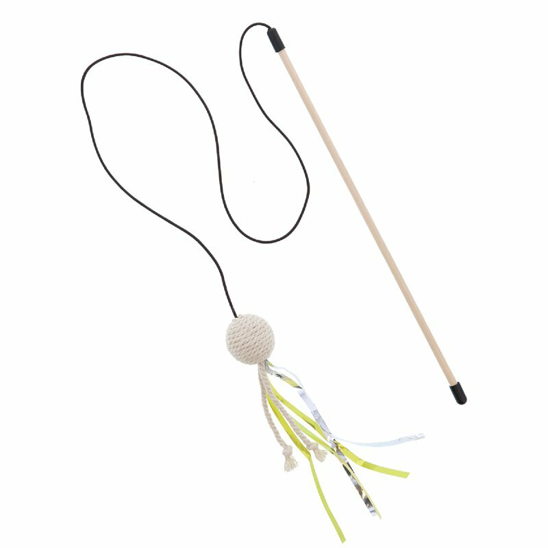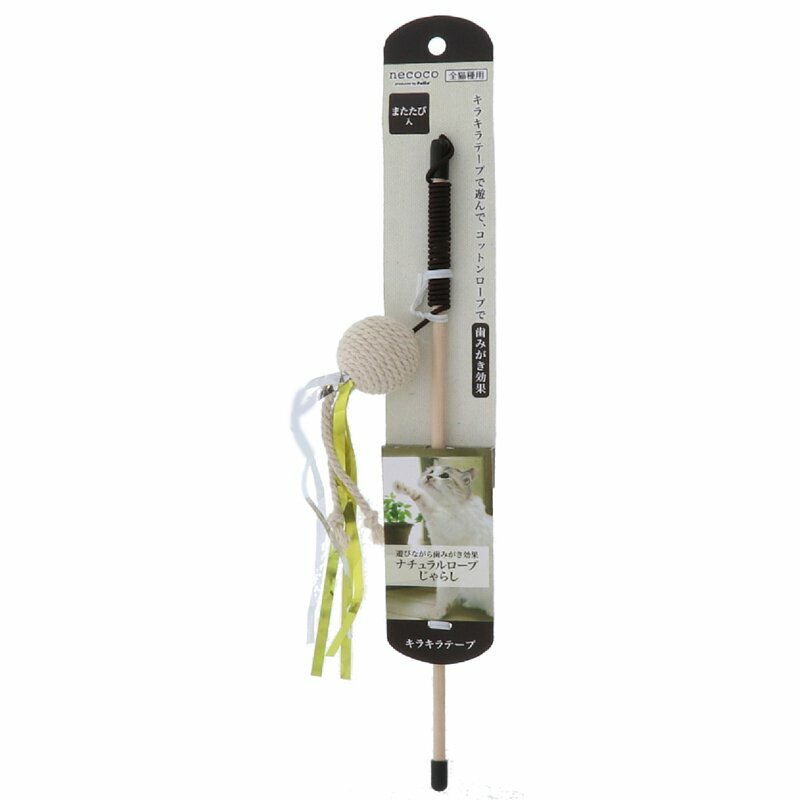 Necoco天然麻繩潔齒球木天蓼逗貓棒附亮絲帶(W25575)