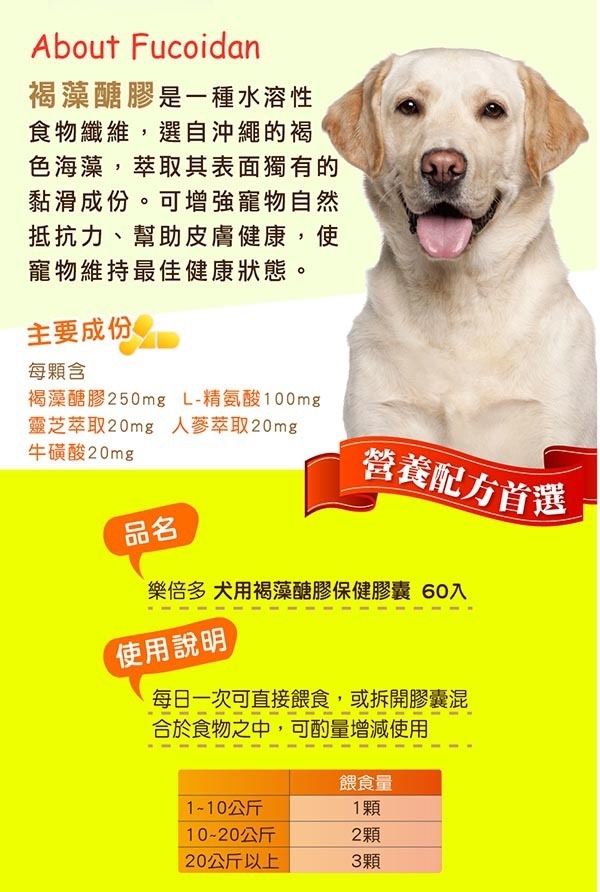 產品名稱:褐藻醣膠保健膠囊 (犬用)