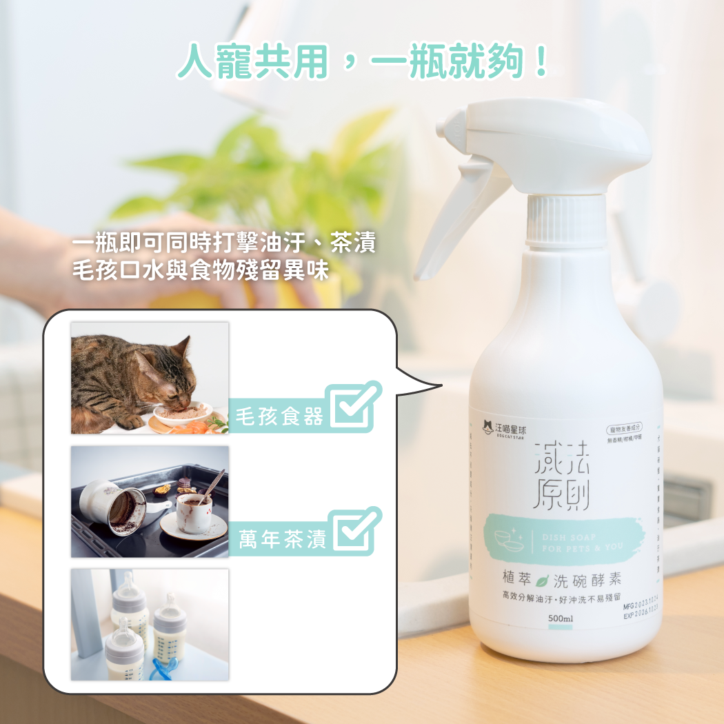 汪喵星球 - 植萃洗碗酵素 500ml &補充瓶 500ml [貓犬用]