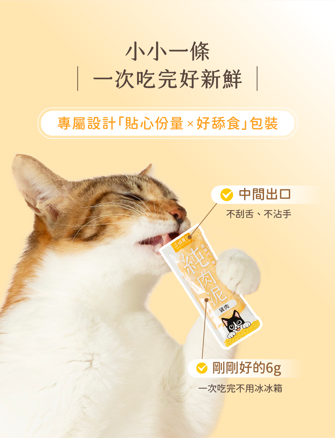 汪喵星球「無膠純肉泥」為零食,成分為100%天然食材製作,不管是貓咪還是狗狗,都可以食用喔!