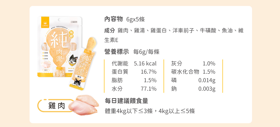 不過腎貓每日的「磷」攝取量有限,毛拔麻可計算扣除日常主食的磷攝取量後評估貓咪還可以吃多少純肉泥,也建議將成分截圖下來詢問信任的獸醫師喔!