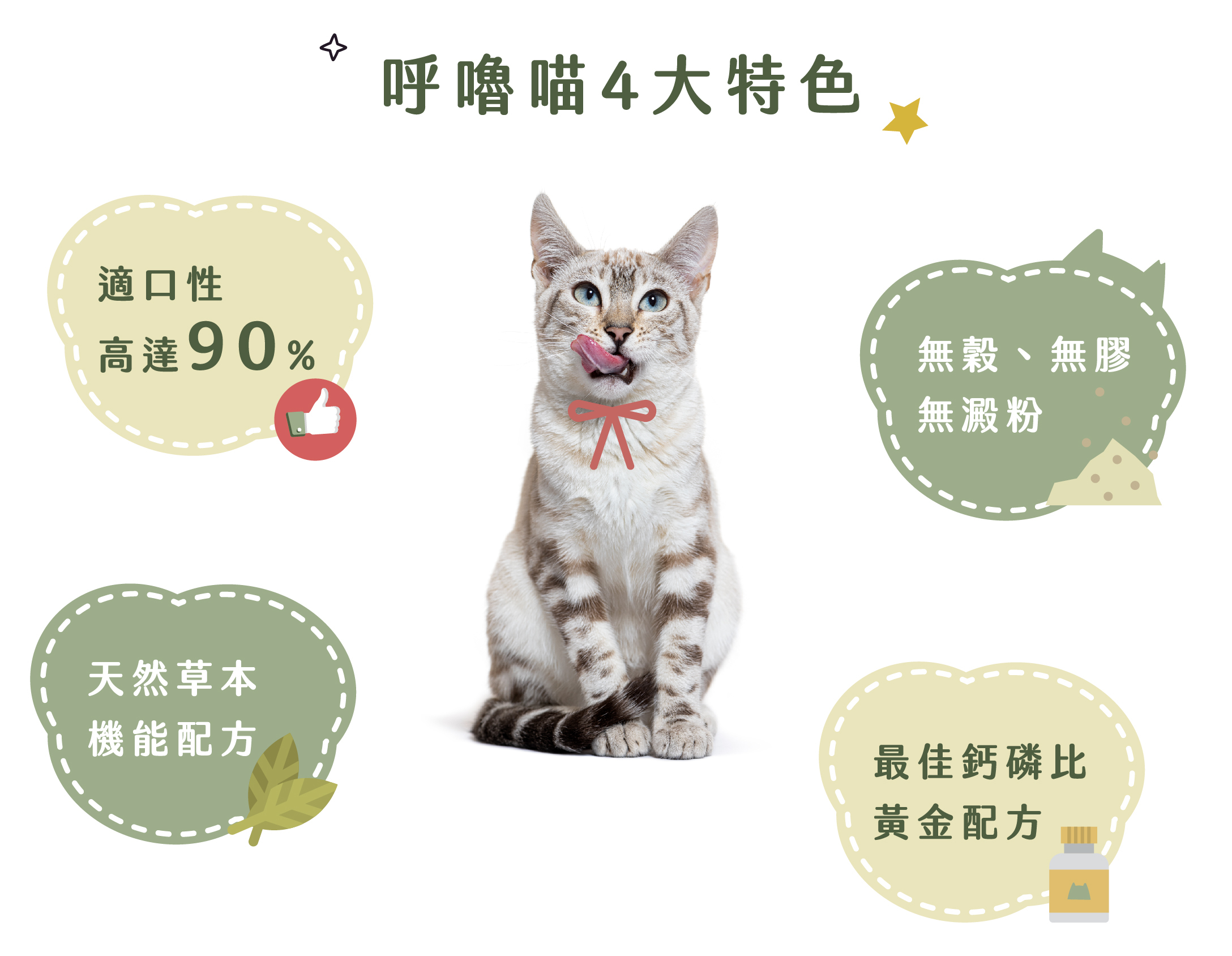 呼嚕喵主食罐均為無穀、無膠、無澱粉,並添加有機草本,讓貓咪們邊吃邊保養!