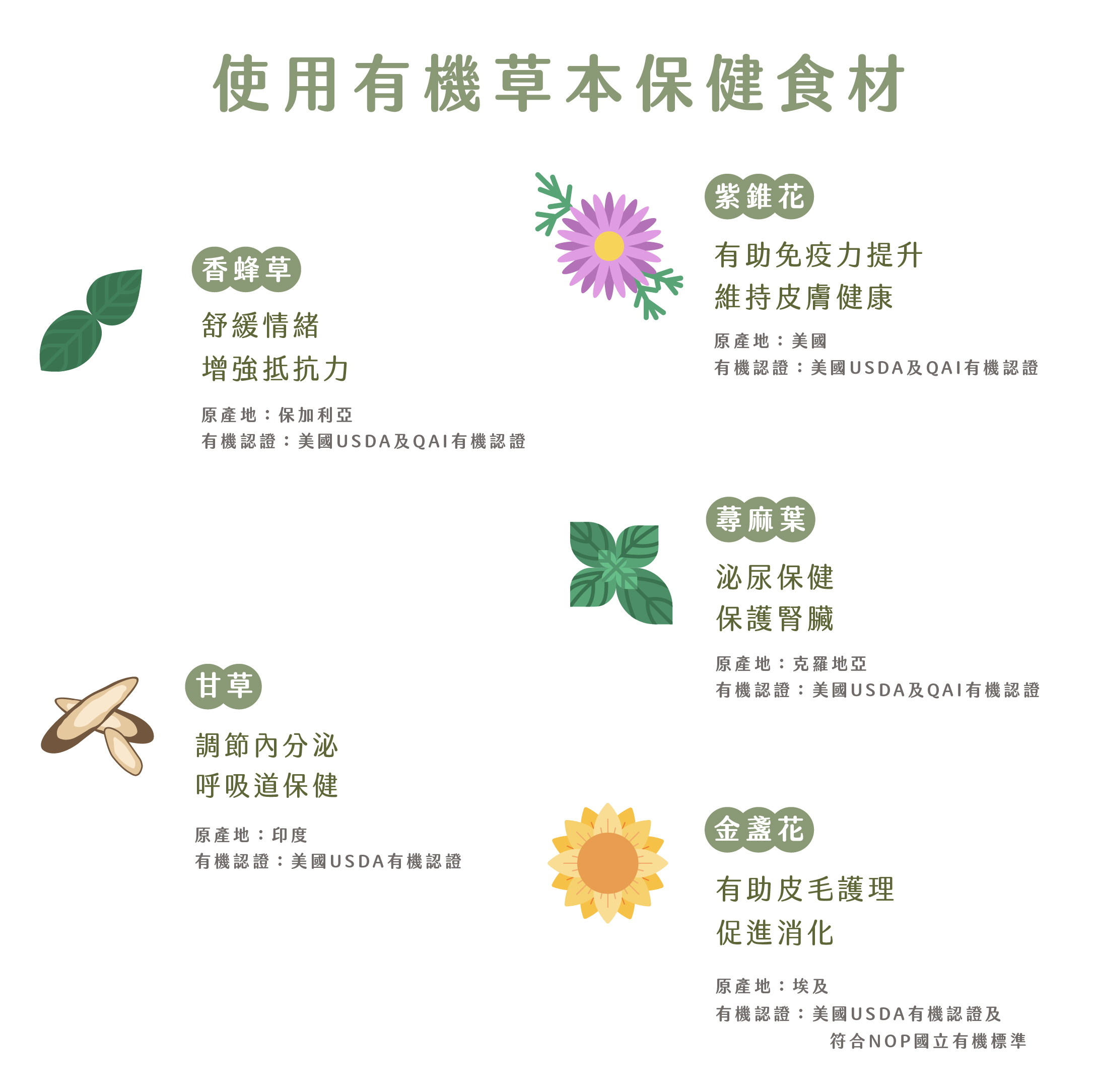 選用來自美國,並擁有美國USDA及QAI有機認證的紫錐花;