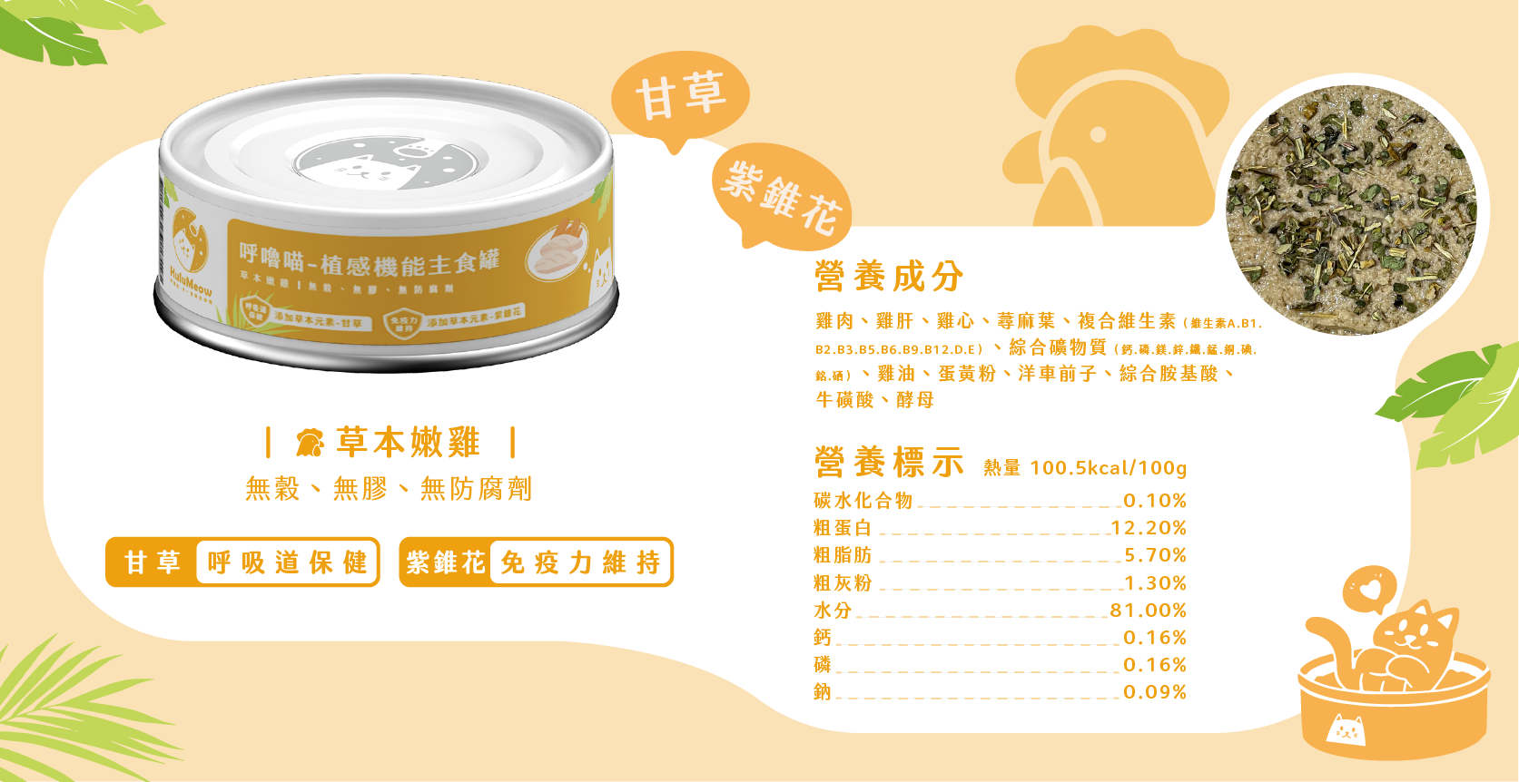 草本嫩雞口味添加紫錐花和甘草。